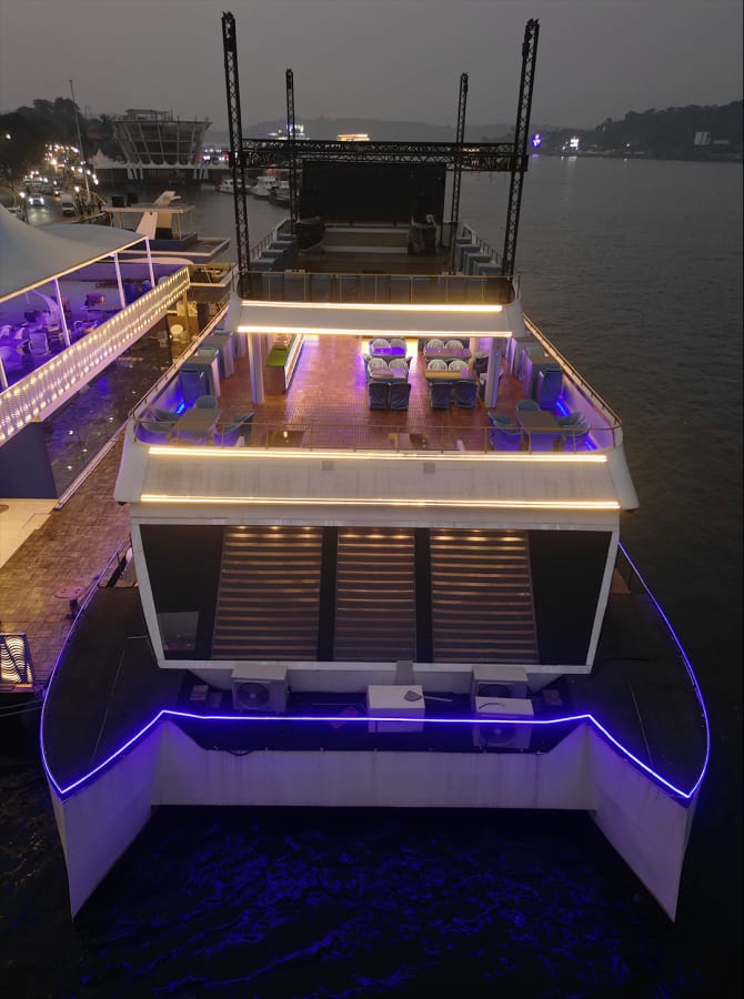We take pride in being the biggest club in town! Goa's premier luxury cruise boat features a VVIP Lounge, offering unmatched comfort and exclusivity. Indulge in the ultimate luxury experience with private access to the most scenic views.
